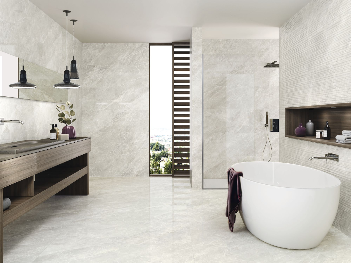 Płytka w połysku Balmoral Silver w rozmiarze 30x90. Idealnie sprawdzi się we wszelkiego rodzaju pomieszczeniach, a dzięki jej uniwersalnemu wyglądowi możesz ją łączyć z innymi płytkami, mozaikami czy drewnem.