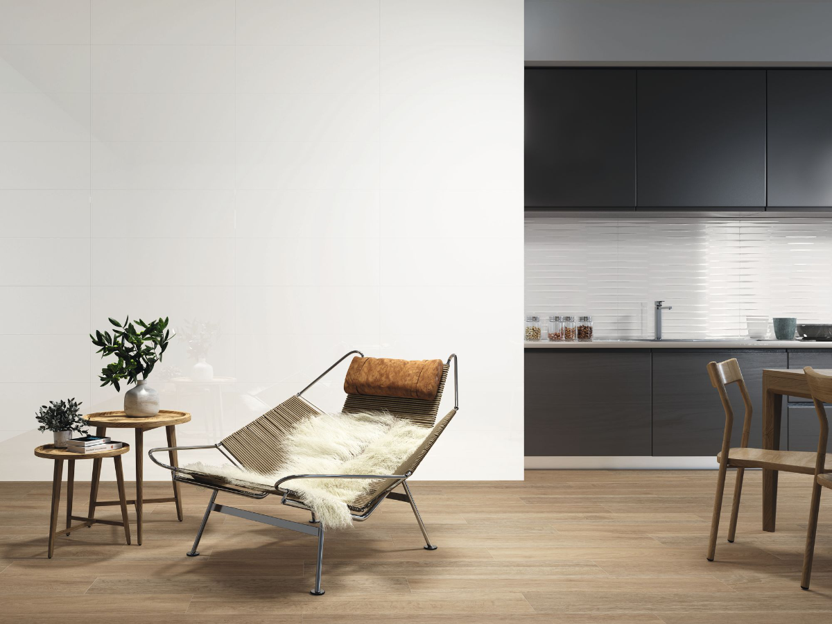Płytka w połysku Blanco Brillo w rozmiarze 30x90. Idealnie sprawdzi się we wszelkiego rodzaju pomieszczeniach, a dzięki jej uniwersalnemu wyglądowi możesz ją łączyć z innymi płytkami, mozaikami czy drewnem.