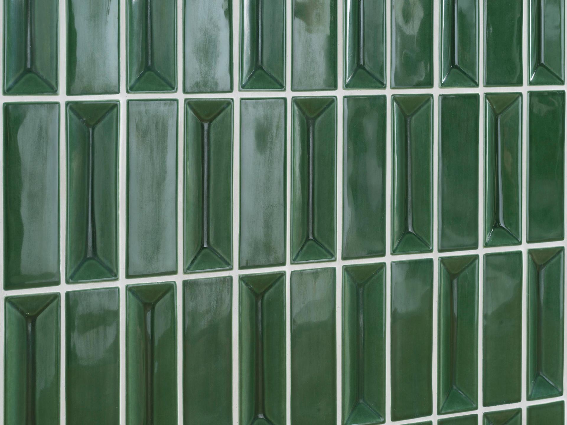 Płytka montowana jest na siatce w formacie 20 × 25,5 cm, co ułatwia instalację i pozwala tworzyć większe panele dekoracyjne bez widocznych łączeń. Bruma Green świetnie prezentuje się w łazienkach, kuchniach i przestrzeniach reprezentacyjnych, wprowadzając wyrafinowany, naturalny kolor.