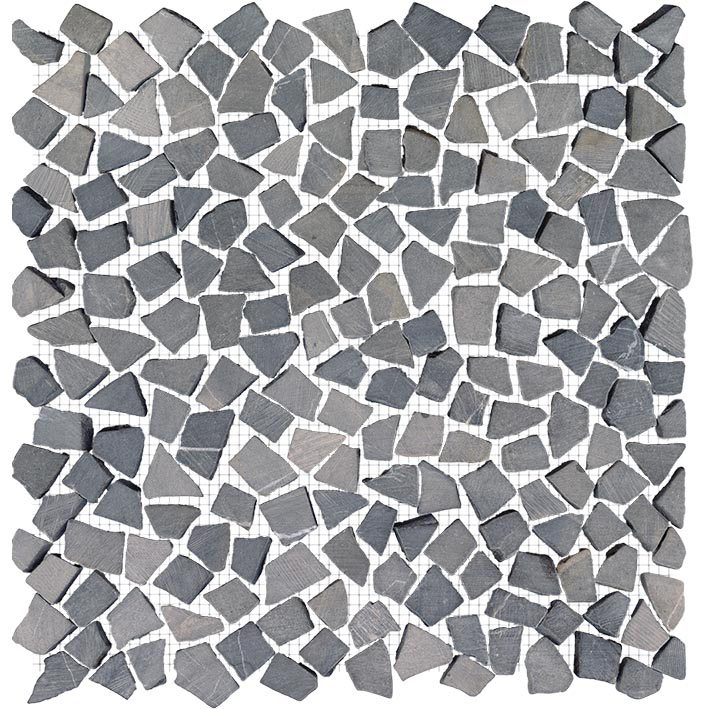 Ciemna kolorystyka i strukturalna powierzchnia tej mozaiki wprowadza do przestrzeni elegancki kontrast, idealny do projektów nowoczesnych, minimalistycznych, loftowych czy spa. Naturalna faktura kamienia odbija światło w subtelny sposób, podkreślając jego trójwymiarowy charakter i nadając wnętrzu wyrazistą dynamikę.