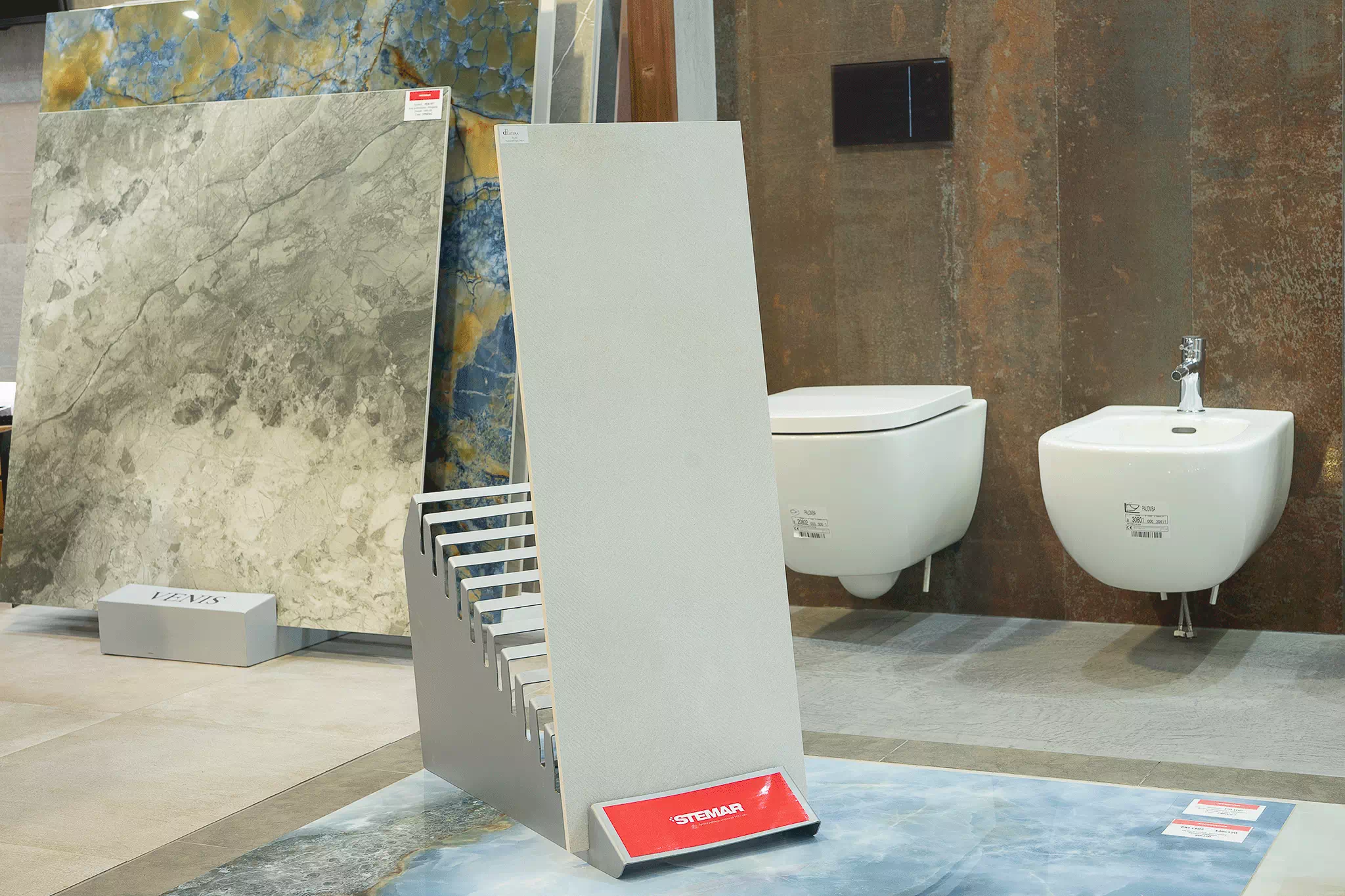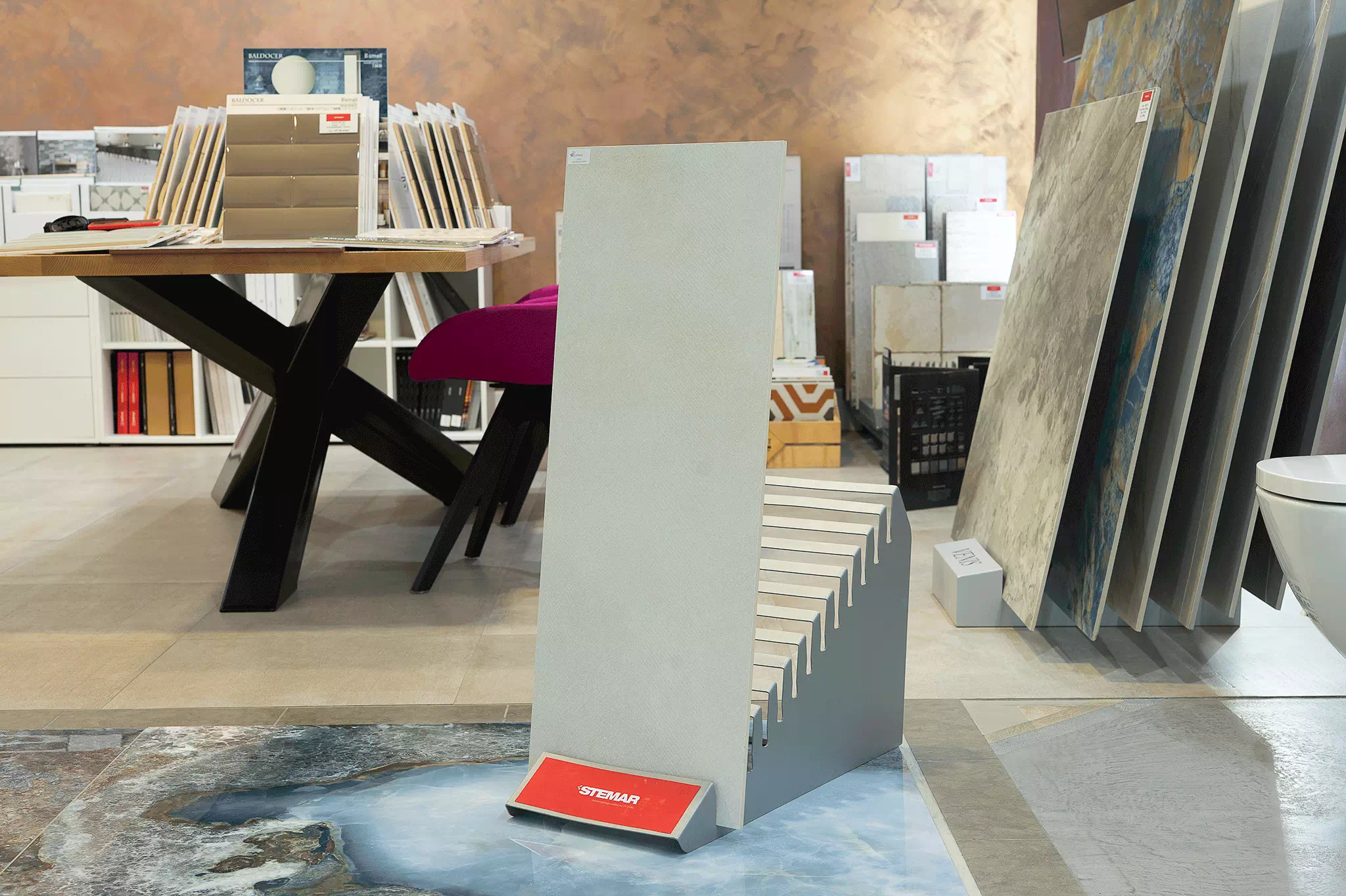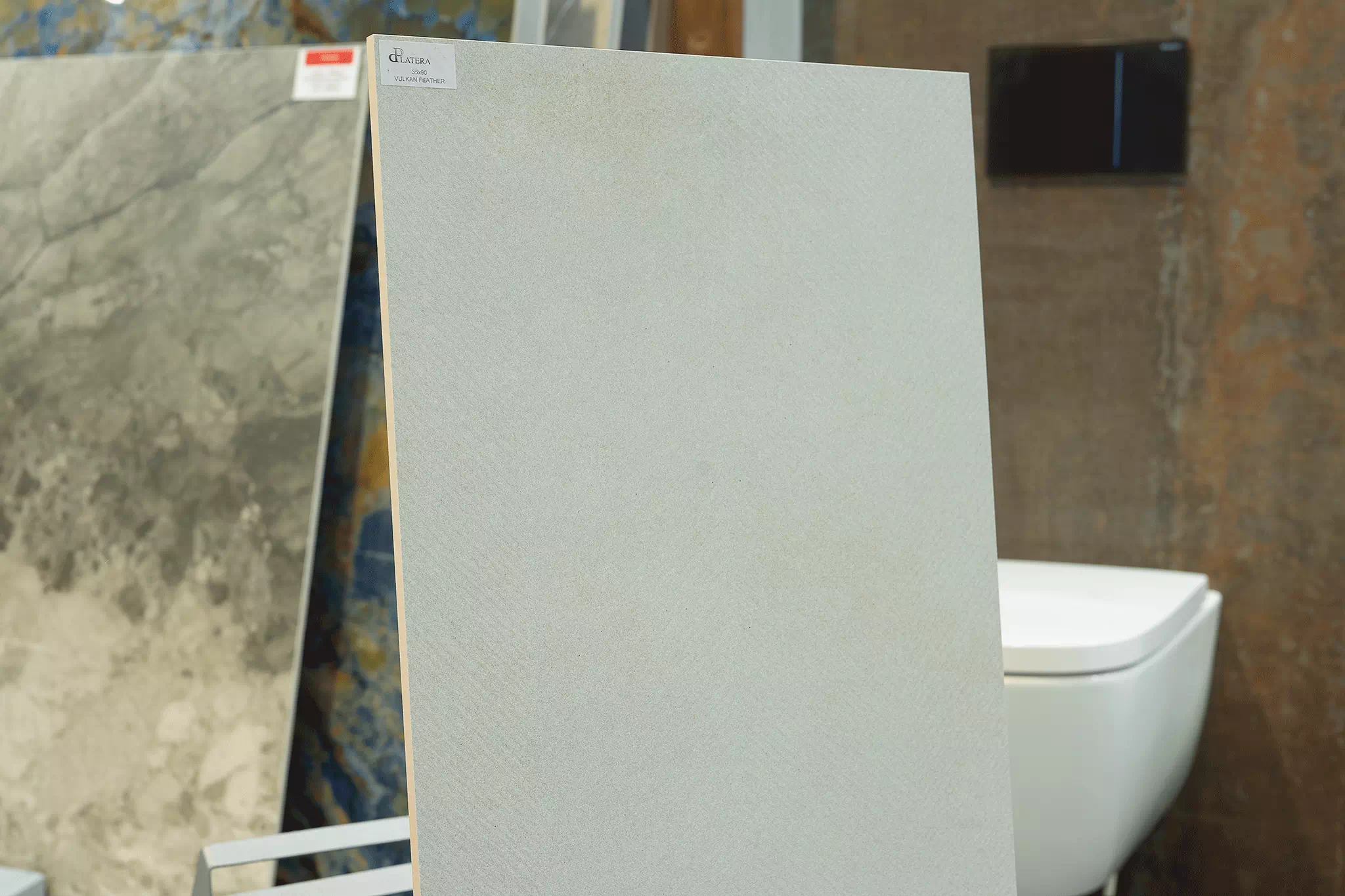 Płytka La Platera Vulkan Feather posiada wiele twarzy. Pokazujemy wybrane trzy, nie ma możliwości wyboru konkretnego wzoru przy zamówieniu.