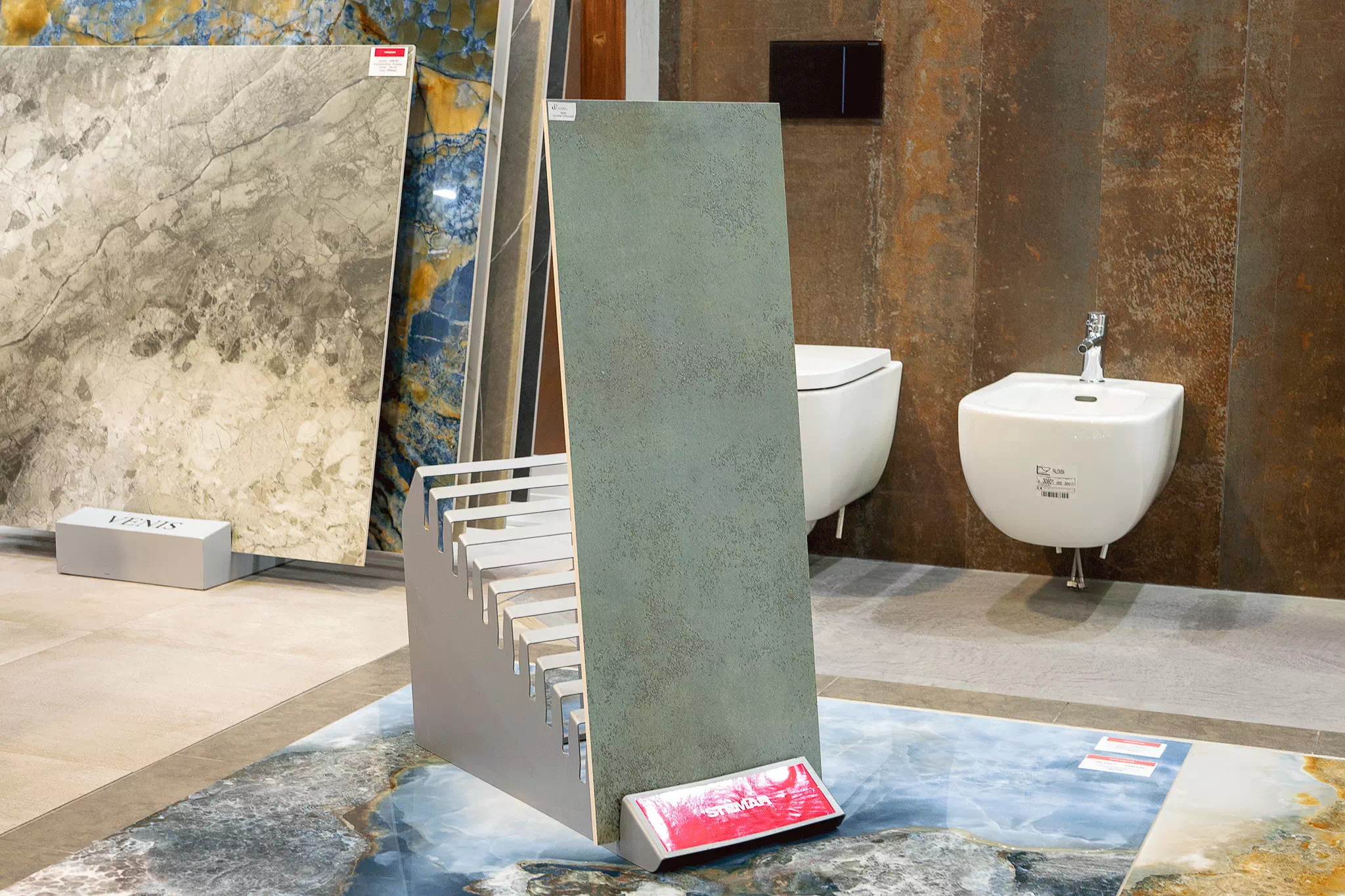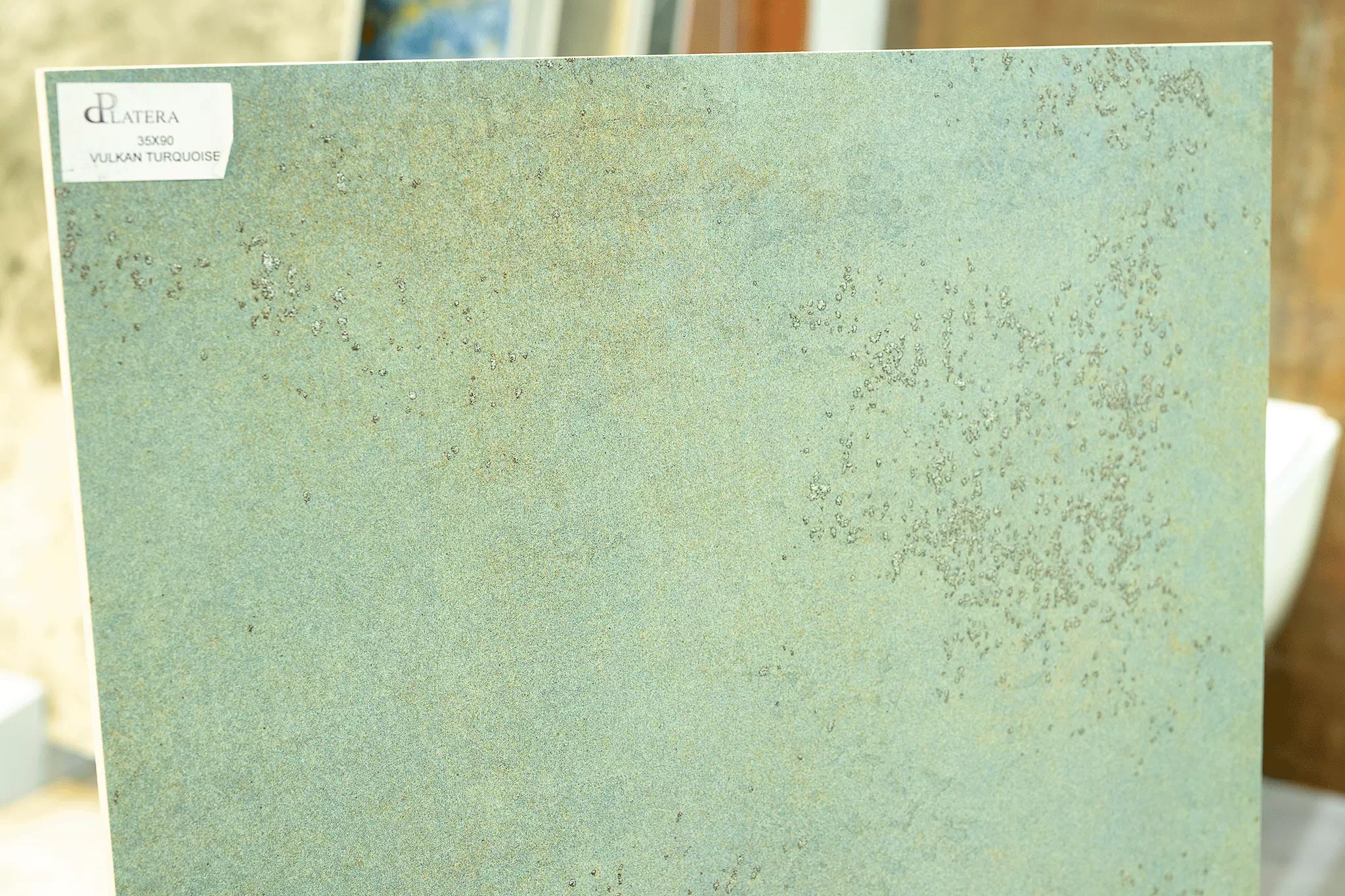 Płytka La Platera Vulkan Turquoise posiada wiele twarzy. Pokazujemy wybrane trzy, nie ma możliwości wyboru konkretnego wzoru przy zamówieniu.