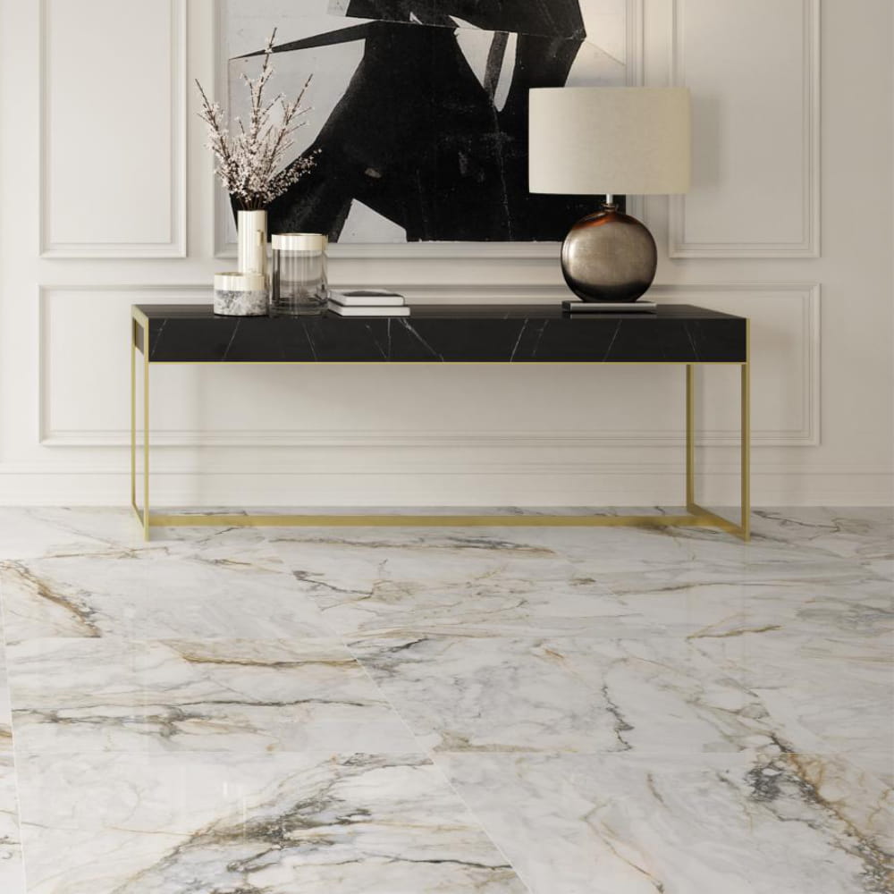Płytka gresowa w połysku zarówno ścienna jak i podłogowa Pisa Gold w rozmiarze 30x60. Idealnie sprawdzi się jako podłoga we wszelkiego rodzaju pomieszczeniach, a dzięki jej uniwersalnemu wyglądowi możesz ją łączyć z innymi płytkami, mozaikami czy drewnem.