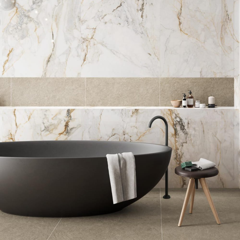 Płytka gresowa w połysku zarówno ścienna jak i podłogowa Pisa Gold w rozmiarze 90x90.