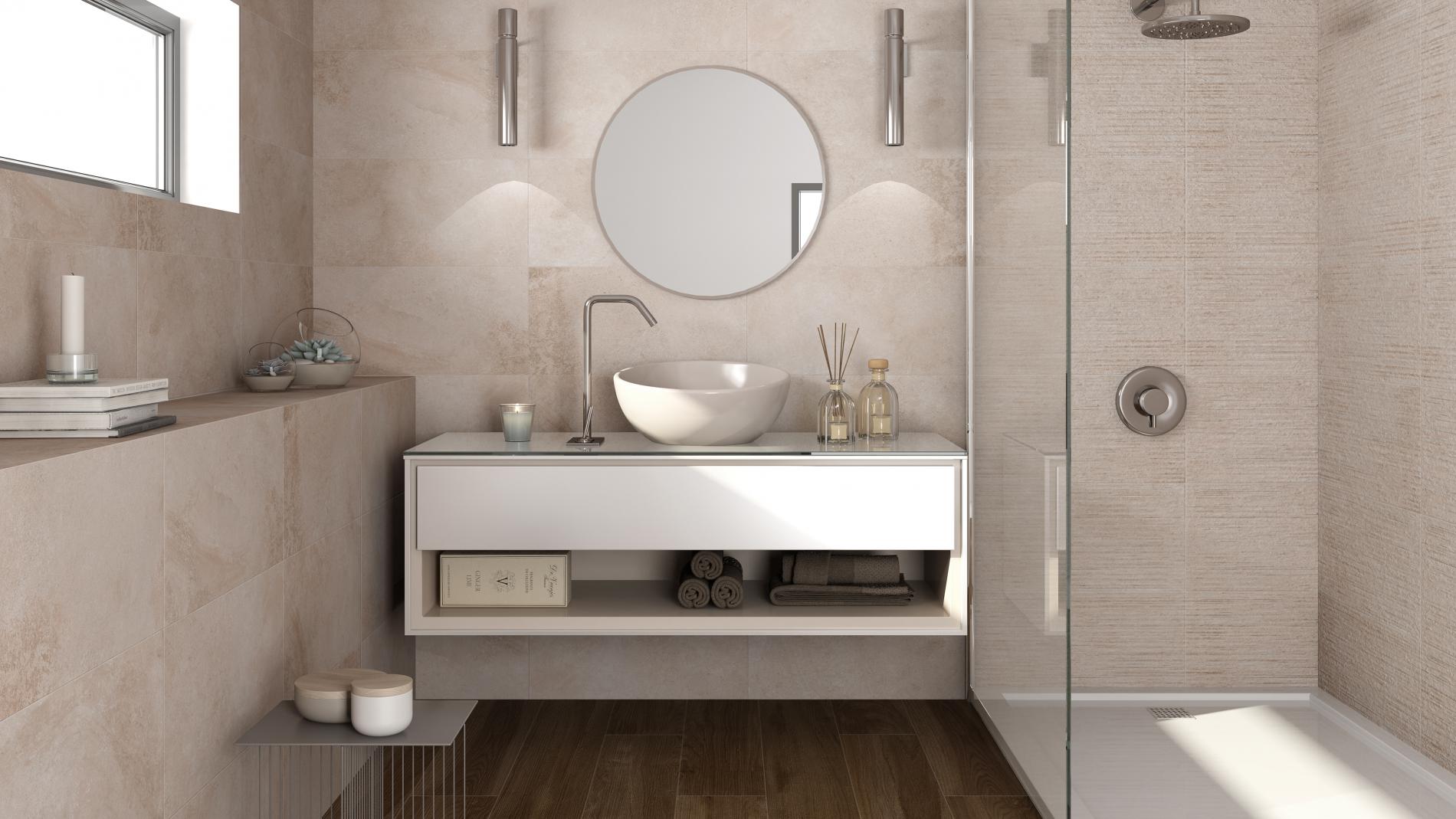 Płytka w macie At Rlv Reval Natural. Idealnie sprawdzi się we wszelkiego rodzaju pomieszczeniach, a także na tarasie czy w ogrodzie - dzięki jej uniwersalnemu wyglądowi możesz ją łączyć z innymi płytkami, mozaikami czy drewnem.