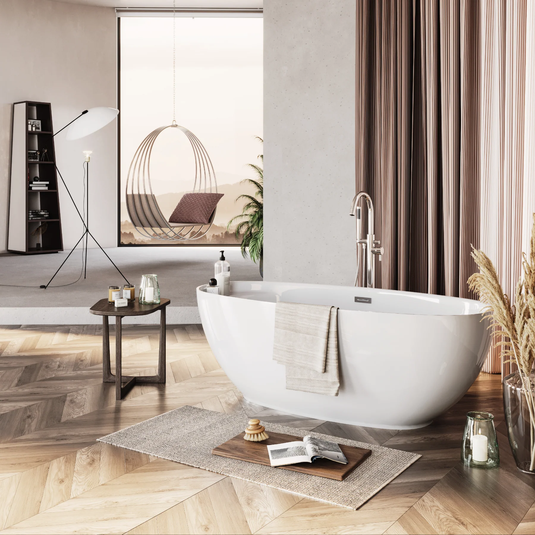 Wbudowana półka to świetne miejsce na kosmetyki, świece, kieliszek wina czy akcesoria kąpielowe — dzięki temu wszystko masz pod ręką, a strefa relaksu pozostaje uporządkowana i estetyczna. To idealny wybór do aranżacji w stylu minimalistycznym, modern classic oraz wnętrz inspirowanych SPA.