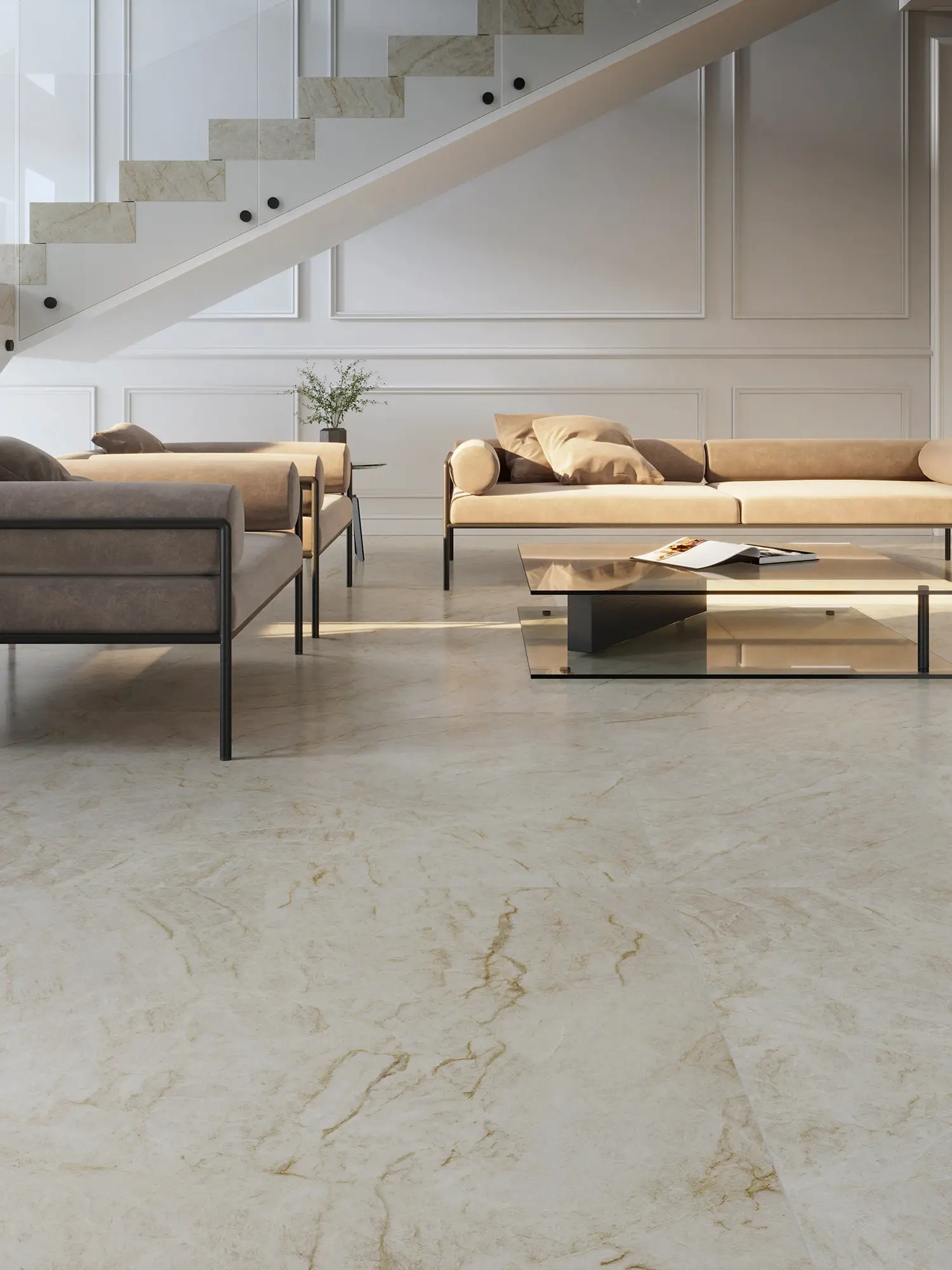 Kolor kości słoniowej, eleganckie wzory, bogate w tekstury - płytki Porcelanosa Taj Mahal Polished 03 120x270 to majstersztyk inżynierii ceramicznej, który ożywi Twoje wnętrza.