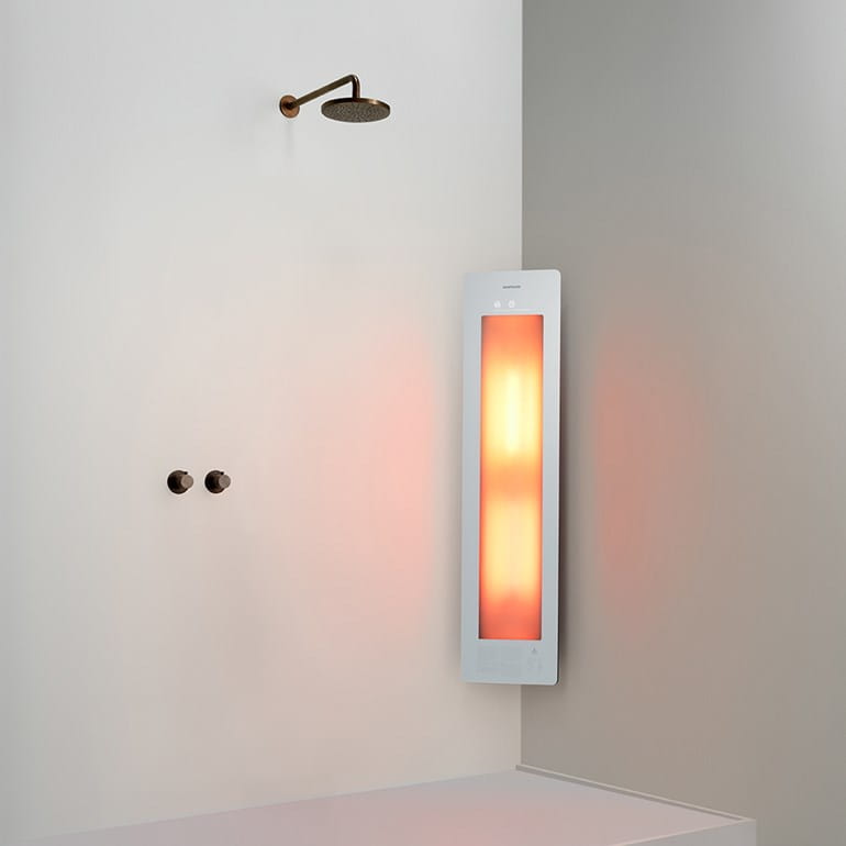 Sunshower PLUS/M to zaawansowane urządzenie emitujące kojące ciepło podczerwieni, zaprojektowane w celu poprawy mobilności i głębokiego relaksu. Dzięki kompaktowym wymiarom i eleganckiemu designowi, idealnie wpasuje się w każdą łazienkę, oferując terapię obejmującą ponad połowę ciała.