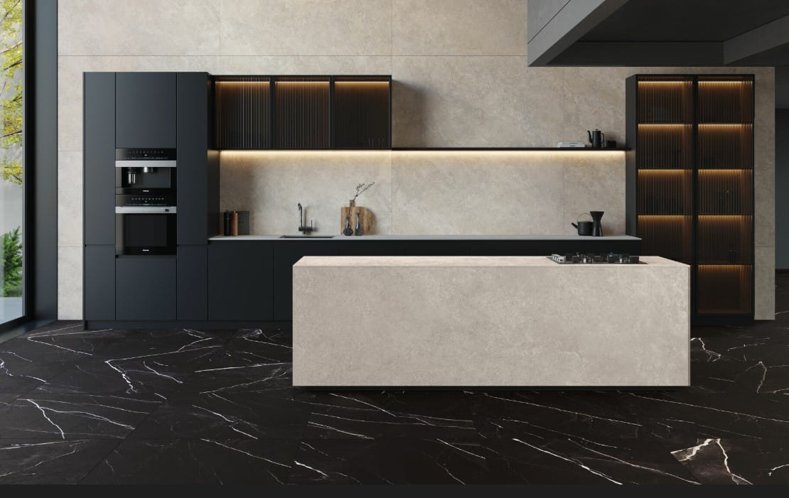 Duży format daje też możliwość tworzenia spójnych przejść między strefami. Jeśli w projekcie pojawia się ta sama tonacja w kuchni i w holu, Linen Desert może stać się elementem, który łączy przestrzeń dzienną w jedną całość. To szczególnie przydatne w nowoczesnych domach i mieszkaniach z otwartym planem.