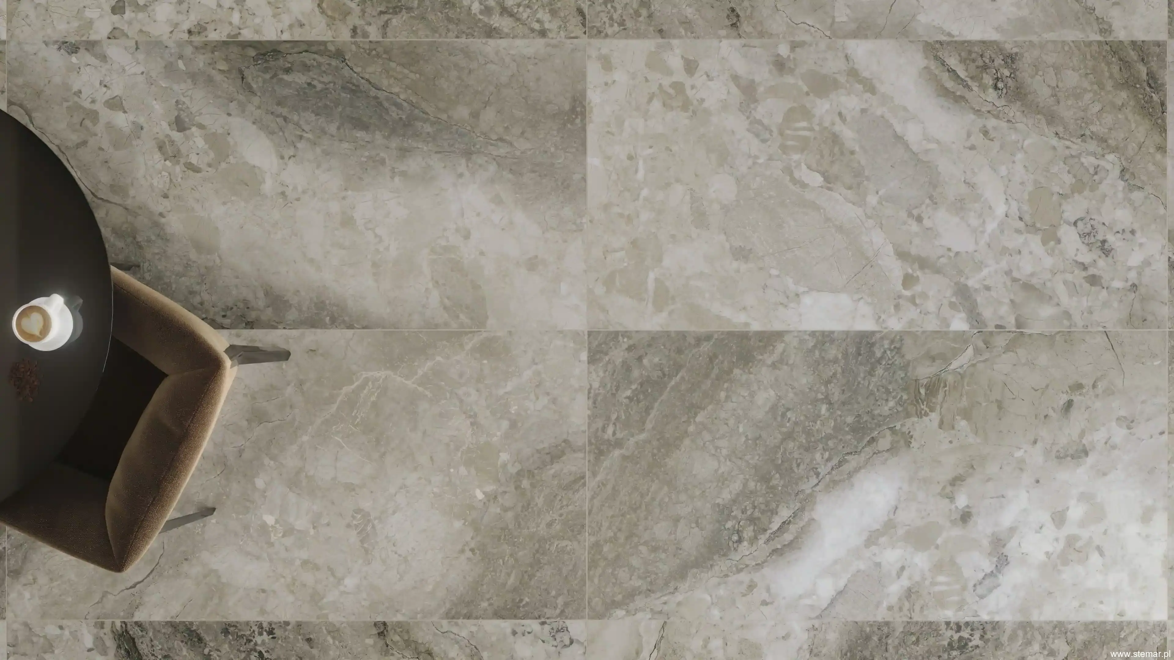 Dreamy Mocha jest płytką, która nie udaje krzykliwego marmuru ani mocno żyłowanego kamienia. Jej siła tkwi w subtelności: powierzchnia przypomina szlachetny kamień o drobnoziarnistej strukturze lub dopracowany mikrocement, gdzie rysunek jest spokojny, a przejścia tonalne miękkie. Taki charakter sprawia, że płytka stanowi świetne tło dla mebli, zabudów stolarskich i dekoracji, a jednocześnie nie wygląda płasko. Matowe wykończenie podkreśla naturalność i ogranicza refleksy światła, co jest szczególnie ważne w dużych przeszkleniach, nowoczesnych salonach i łazienkach z oświetleniem punktowym.
