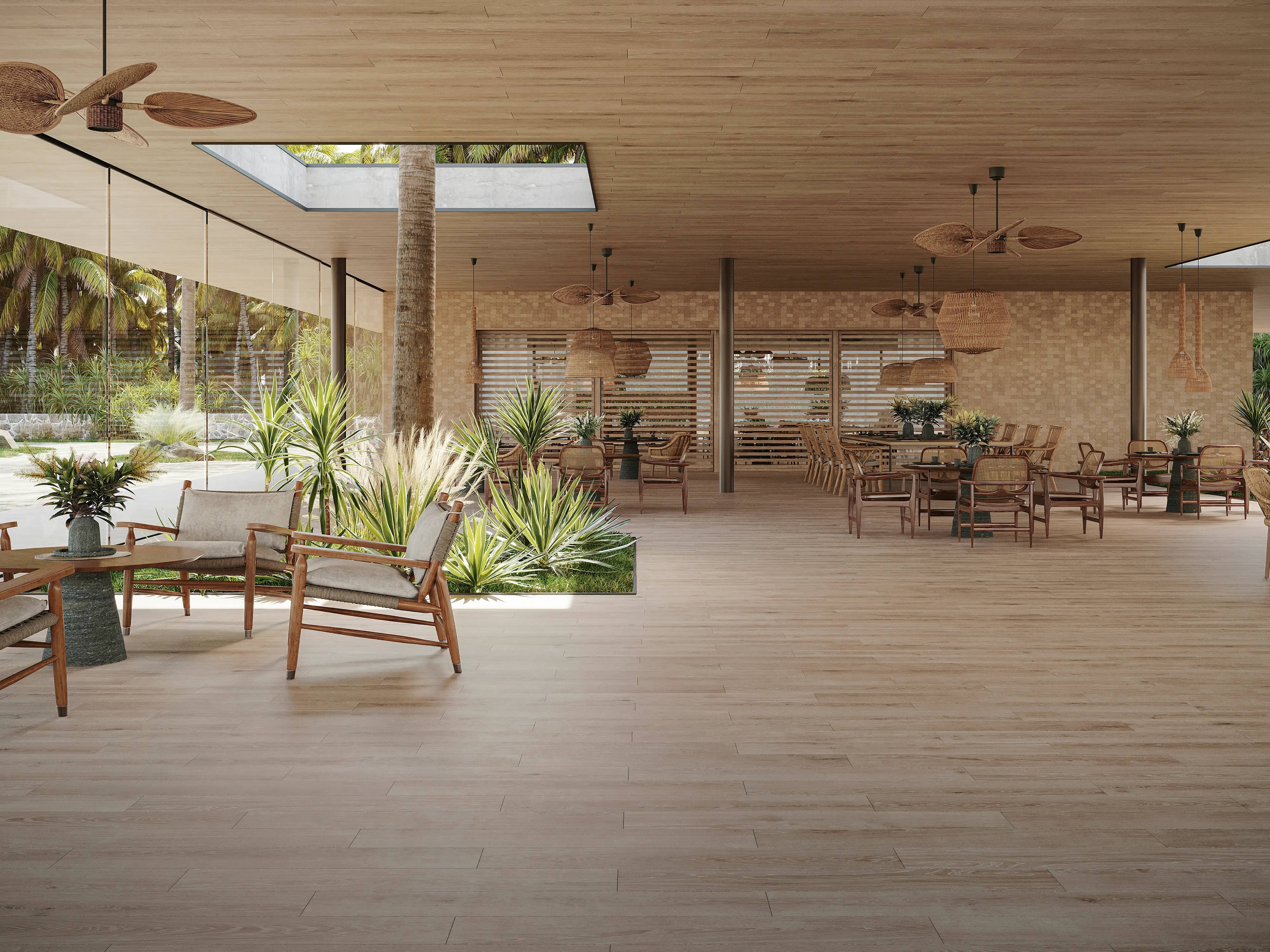 Format 19,3 × 120 cm nawiązuje do desek podłogowych, dzięki czemu uzyskasz efekt długich, harmonijnych pasów – zarówno na podłodze, jak i na ścianie. Matowe wykończenie dodaje realizmu i sprawia, że powierzchnia wygląda szlachetnie w świetle dziennym oraz sztucznym.