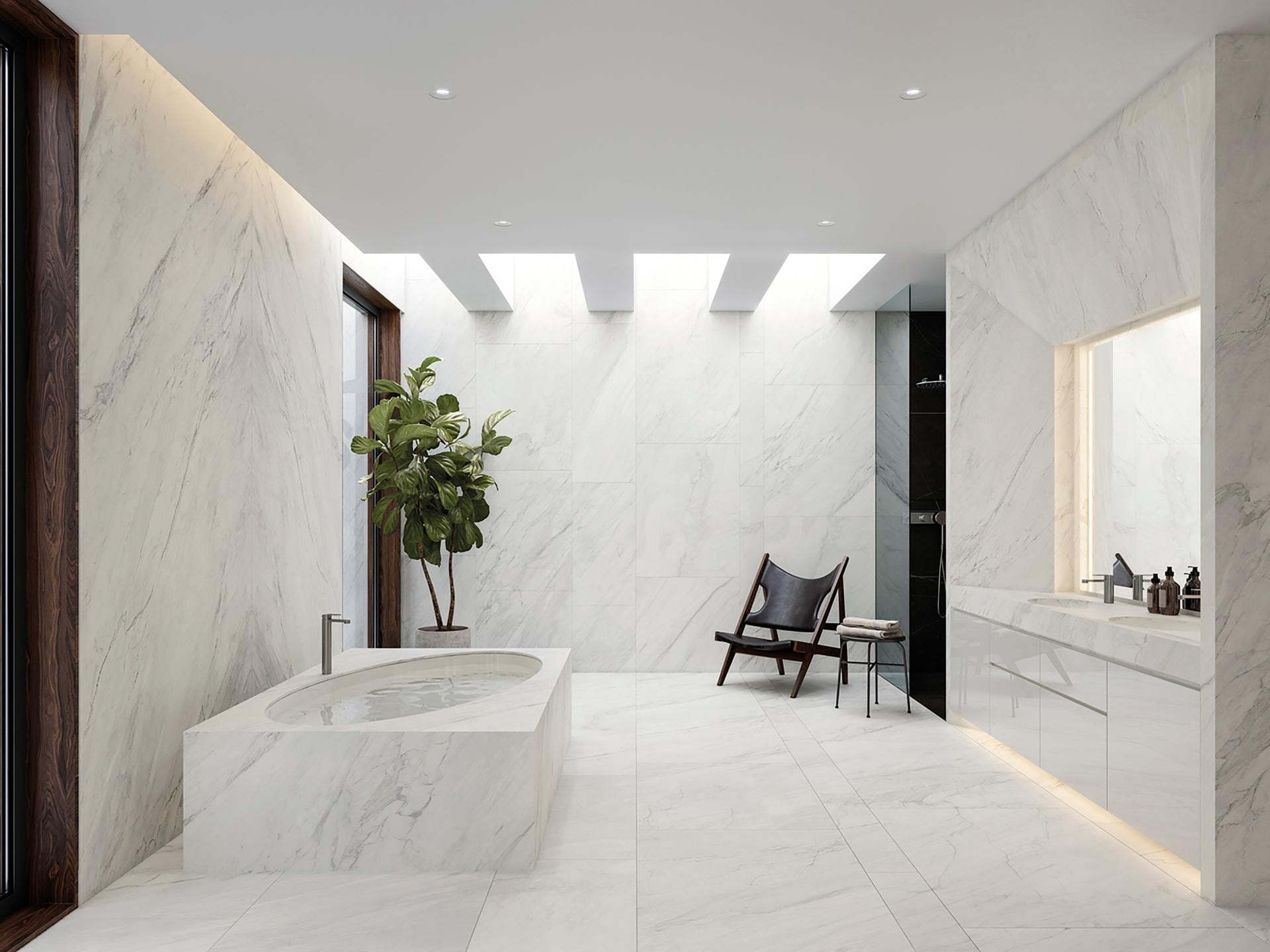 To rozwiązanie szczególnie cenione w projektach łazienek premium, stref prysznicowych typu walk-in, reprezentacyjnych holi oraz eleganckich ścian akcentowych w salonie. Wzór inspirowany marmurem pozwala stworzyć aranżację ponadczasową – jasną, czystą i spójną stylistycznie.