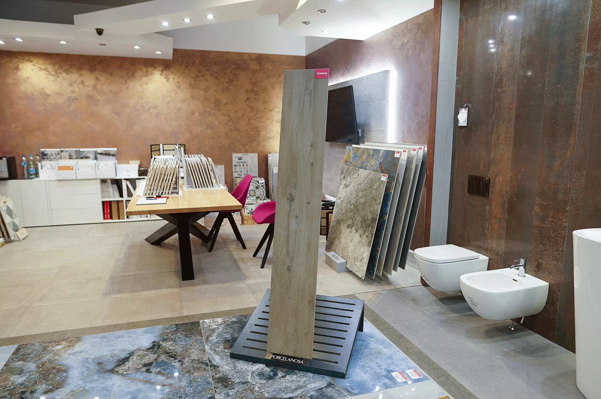 W Stemar od lat pomagamy dobierać płytki Porcelanosa do konkretnych wnętrz i inwestycji – jesteśmy pierwszym dystrybutorem Porcelanosa w Polsce, a współpracę z marką prowadzimy od 1993 roku. Zapraszamy do naszego salonu w Gorzowie Wielkopolskim z ekspozycją ponad 1200 m²; możemy też przygotować koncepcję ułożenia i wysyłamy próbki, aby łatwiej było podjąć decyzję na miejscu budowy.