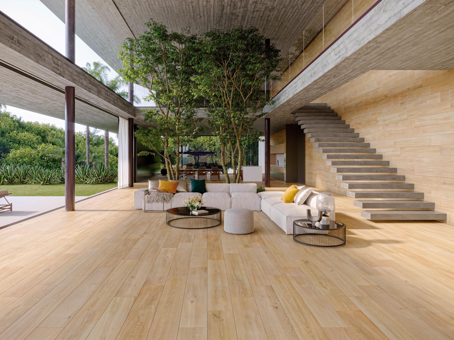 Jeśli szukasz jednej, spójnej kolekcji do poprowadzenia tego samego „drewna” z salonu do łazienki, a nawet na taras – ten kierunek jest szczególnie trafiony. Antypoślizgowe wykończenie pomaga ograniczyć ryzyko poślizgnięcia w miejscach, gdzie powierzchnia bywa mokra.