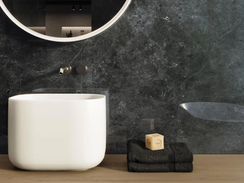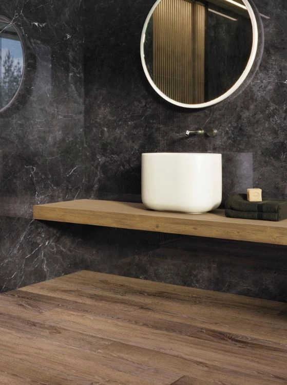 Kolekcja Velluto w wydaniu Nero to wybór do nowoczesnych łazienek, salonów kąpielowych, reprezentacyjnych holi czy stref dziennych, gdzie chcesz uzyskać wrażenie luksusu i spójnej, „hotelowej” estetyki.